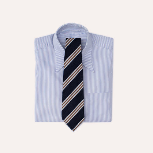 Corbata de seda laminada a mano con rayas Super Repp en rojo, crema y oro Corbata de seda laminada a mano con rayas Super Repp en rojo, crema y oro
